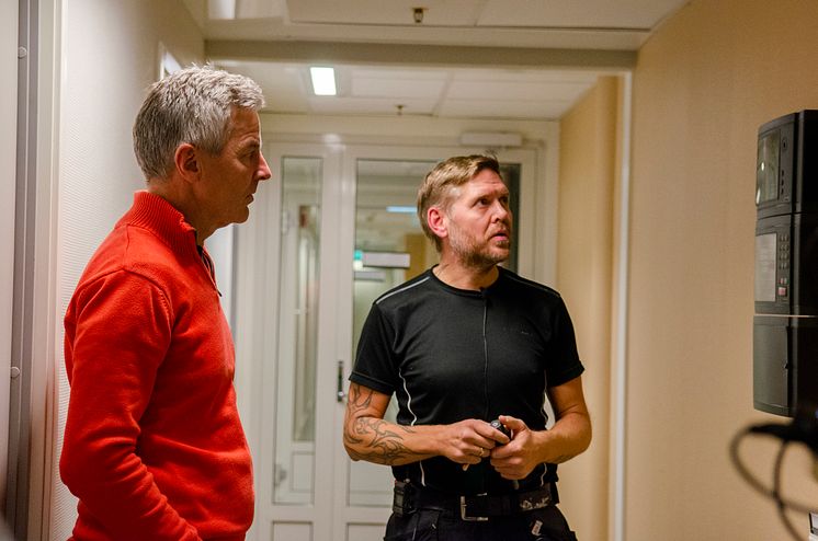 Drifter Kjetil Goddokken på Ahus avdelingen Åråsen har med seg seniorrådgiver Øyvind Sandstad på årets Fang energityven. Foto: Andrea Nøttveit